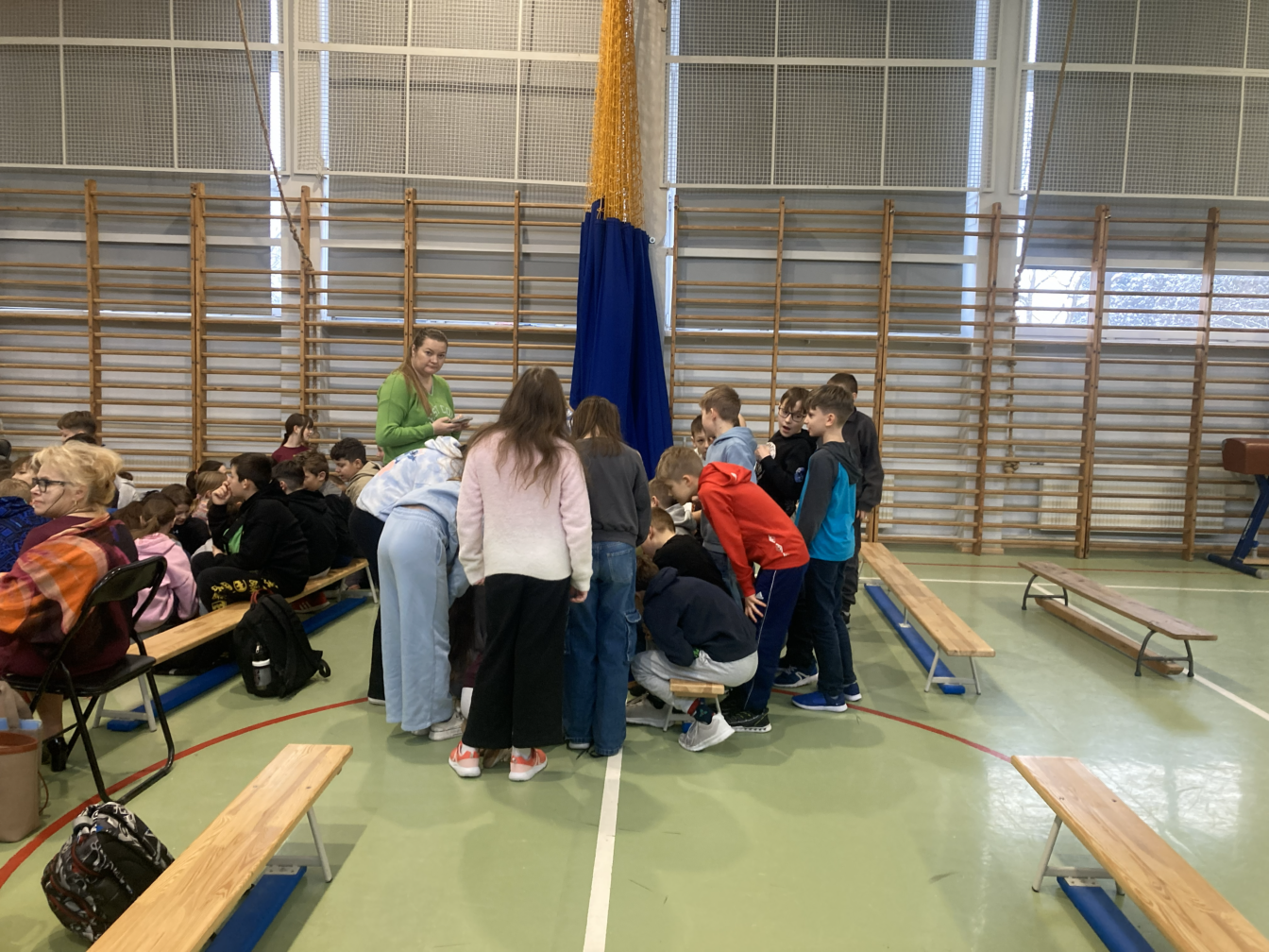 W dniach 12-14 stycznia klasy 5-8 uczestniczyły w sali gimnastycznej w praktycznych zajęciach, prowadzonych przez psychologa szkolnego i pedagoga specjalnego, dotyczących fonoholizmu, jego skutków i sposobów zapobiegania mu. W ich trakcie uczniowie pracowali w zespołach klasowych, poszerzając swoją wiedzę dotyczącą tego ważnego zagadnienia.