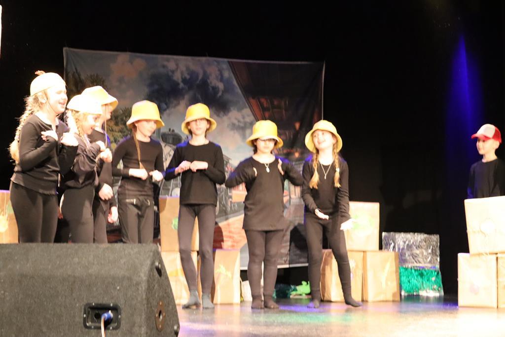 Dzieci występujące podczas XII gminnego przeglądu teatrzyków w Wieliczce. Inscenizacja przygotowana przez występujących