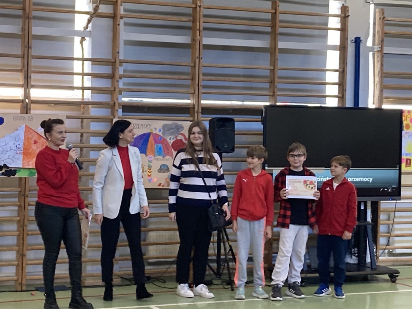 Wyniki konkursu w ramach ogólnopolskiej kampanii DAJEMY DZIECIOM SIŁĘ: w kategorii oddziały przedszkolne i klasy 1-3 na plakat / transparent - KLASA 3E w kategorii klas 4-6 na spot / film - KLASA 4F w kategorii klas 7-8 na spot / film - KLASA 7A. Zwycięskim klasom oraz