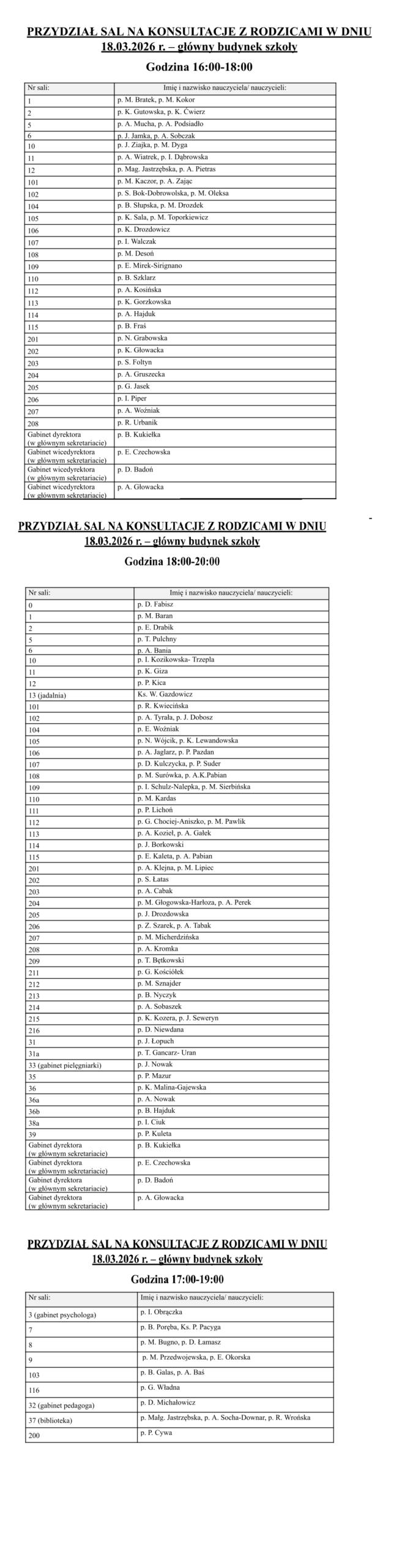 KONSULTACJE Z RODZICAMI W DNIU 18.03.2026 r