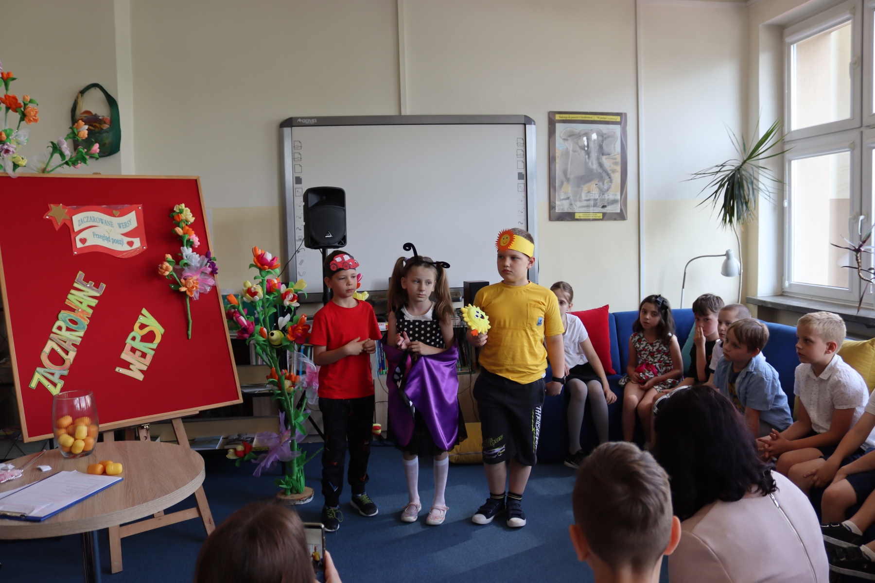 W jubileuszowej edycji wzięło udział ponad 60 uczniów z klas 1-8, którzy z ogromnym zaangażowaniem i sercem zaprezentowali wybrane utwory poetyckie. Recytacje były pełne emocji, wyobraźni i indywidualnej interpretacji – nie zabrakło ani klasyki poezji dziecięcej, własnych utworów, ani nowoczesnych, zaskakujących tekstów.