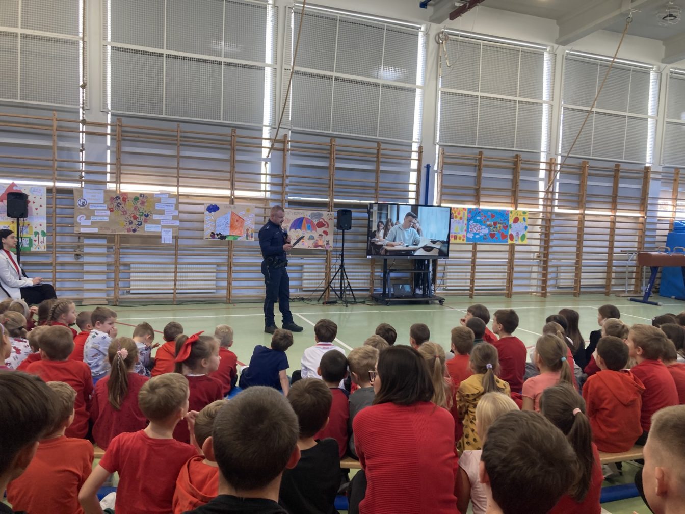Towarzyszyły nam czerwony kolor jako wyraz sprzeciwu wobec krzywdzenia najmłodszych oraz ogrom pozytywnych emocji. Gościem specjalnym spotkania był funkcjonariusz Komendy Powiatowej Policji w Wieliczce – Damian Ostręga, który podzielił się z naszymi uczniami swoim doświadczeniem i wskazówkami gdzie i kiedy należy szukać pomocy.
