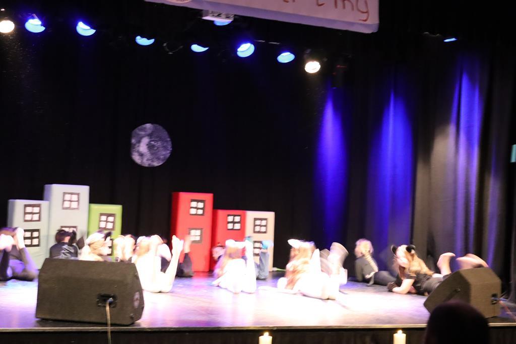 Dzieci występujące podczas XII gminnego przeglądu teatrzyków w Wieliczce. Inscenizacja przygotowana przez występujących