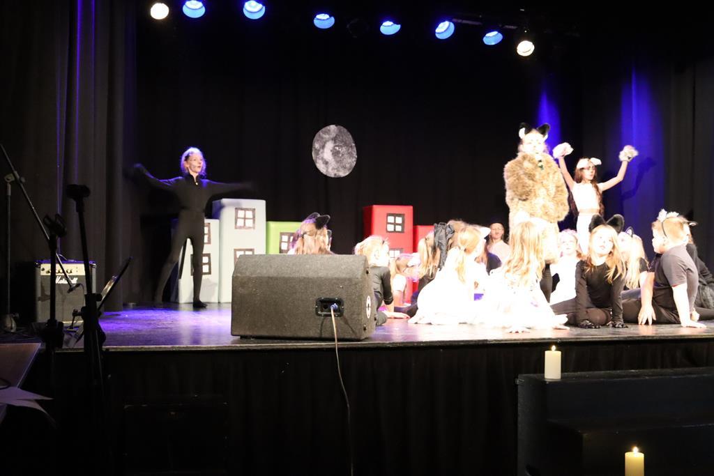 Dzieci występujące podczas XII gminnego przeglądu teatrzyków w Wieliczce. Inscenizacja przygotowana przez występujących