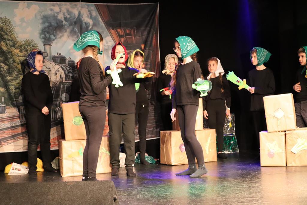 Dzieci występujące podczas XII gminnego przeglądu teatrzyków w Wieliczce.